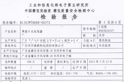 風(fēng)華高科委托工業(yè)和信息化部電子第五研究所-中國賽寶實驗室進(jìn)行第三方檢測。