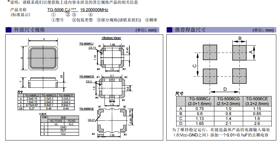TG-5006CJ,TG-5006CG,TG-5006CE溫補(bǔ)晶振該如何識(shí)別?