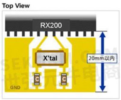 盡可能的讓晶體單元,外接電容和電阻離靠近RX200 Series.(減少布線距離,可以降低干擾)