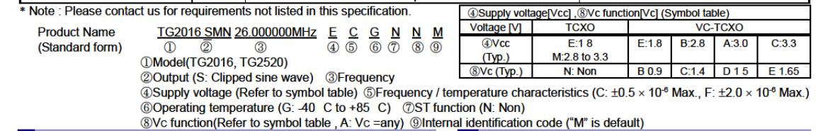 特別注意:TG2016SBN,TG2520SBN可以使用TG2016SMN,TG2520SMN替代,用戶可以根據(jù)相對(duì)應(yīng)的電壓,跟我們咨詢選型,對(duì)應(yīng)的電壓如下圖所示: