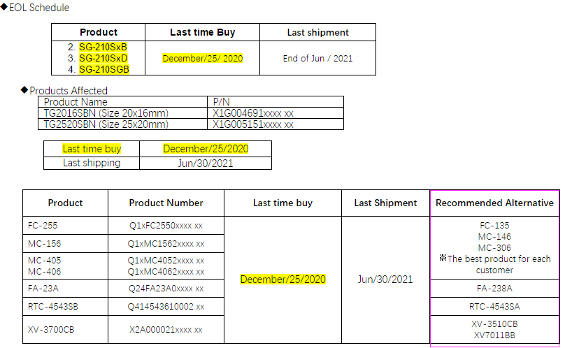 關(guān)于愛普生晶振部分即將停產(chǎn)老型號(hào)及替換型號(hào)的通知