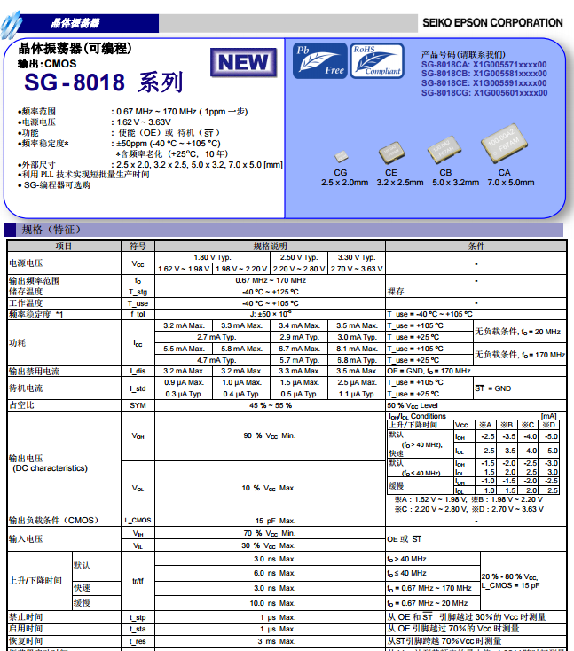 、SG7050CAN是一款日本進口愛普生常規(guī)用途、常規(guī)7050尺寸擴展溫度有源貼片晶振,頻率范圍1MHz ~ 170MHz,常規(guī)品為-40~85℃工業(yè)級晶振,也可以把工作溫度擴展溫...
