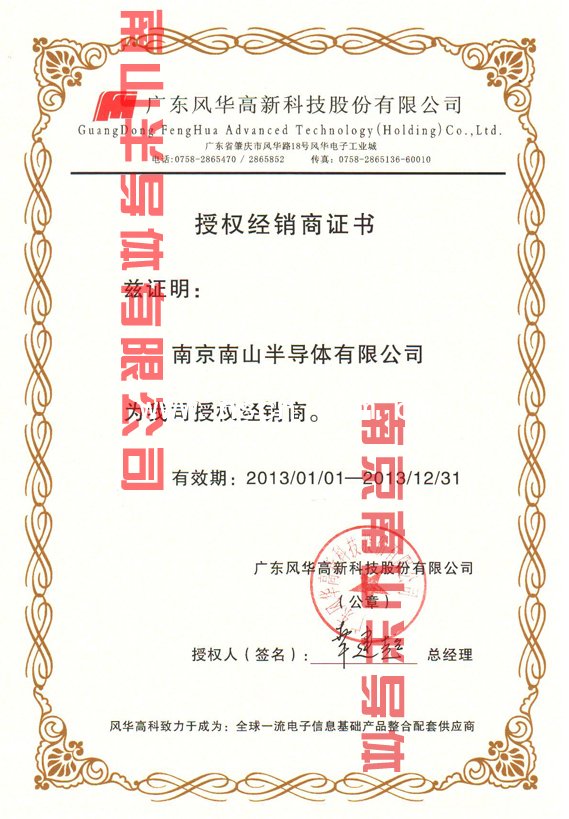 點(diǎn)擊查看風(fēng)華高科一級代理證書大圖