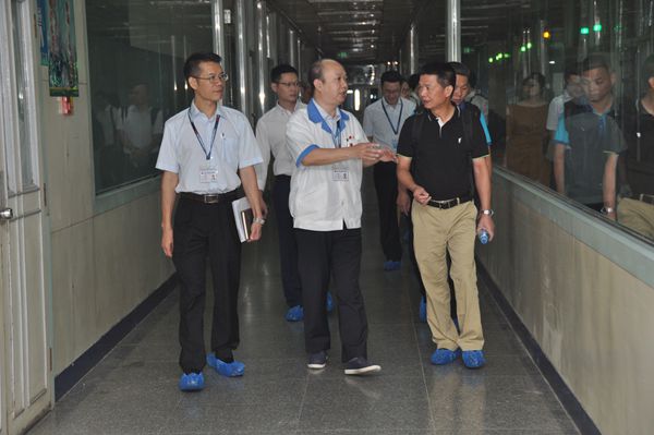 圖為廈門鎢業(yè)董事長黃長庚(圖右)詳細了解MLCC相關情況