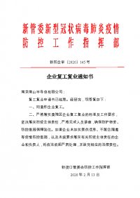 為支持重點(diǎn)客戶的有序生產(chǎn),南京南山半導(dǎo)體有限公司于2020年2月13日收到南京市新街口管理委員會(huì)(新管委)新型冠狀病毒肺炎疫情 防控工作指揮部通知,在2月14日復(fù)工。 暫定工作時(shí)...
