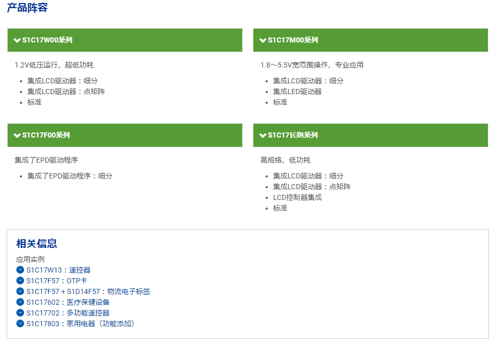 愛(ài)普生MCU產(chǎn)品的家族成員,并且?guī)透魑豢蛻舴治鱿聻楹?strong>愛(ài)普生MCU芯片的分類規(guī)格和應(yīng)用案例: